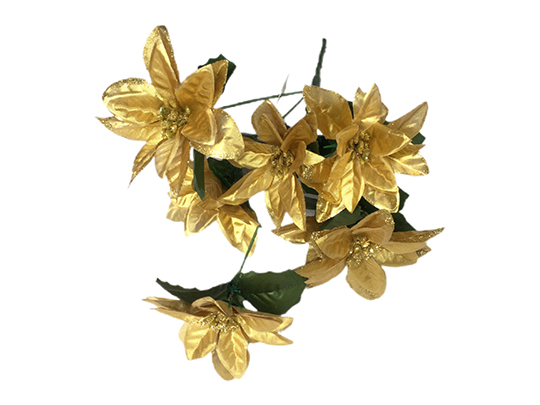 Xmas Flower - 7 Head Poinsettia - Gold - 32cm - XS0606