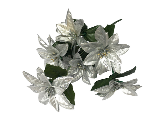 Xmas Flower - 7 Head Poinsettia - Silver - 32cm - XS0607