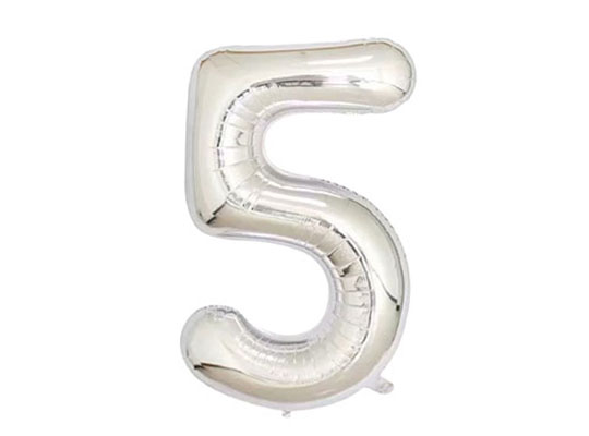 Foil Balloon - 82cm - Silver - Number 5 - PT2502