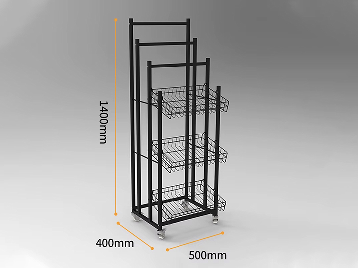 Metal Movable Umbrella Stand with 3 Trays and 2 Long Umbrella Holders - Black and White - No DC - LP0131